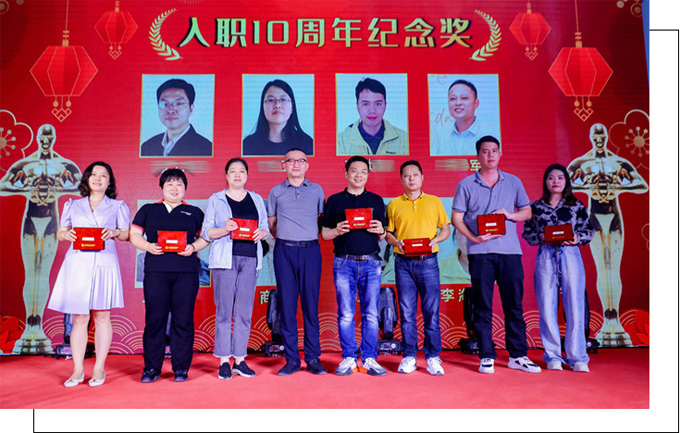 副总经理李群发言时指出,深知人才是我们企业持续发展的根基,乔合里能够长期被客户认同,让客户满意,靠得就是我们乔合里引以为傲的人才。大家在万千用人单位中选择乔合里,这是对乔合里的信任和托付,我们始终为员工提供更好的生活和工作环境,更好的成长和发展通道,更贴心的福利,形成了吸引优秀的传承,感谢大家一路相伴并肩奋斗。为了表彰乔合里人才,公司为相关员工颁发了属于他们的荣誉:十年年资奖10克纯金牌(18人)、五年年资奖5克纯金牌(77人)、三年年资奖3克纯金牌(123人),优秀员工奖(53人)、最佳新人奖(21人)、优秀管理者奖(16人)。